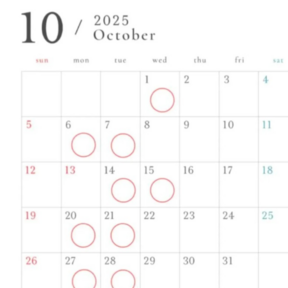 2025.10.10 Oct. 10月のお料理内容を 公式インスタグラムへ ご案内しております (10 / 2 ~ 11 / 3 …詳細 2025.10.10 10月店休日のお知らせ ○印は店休日です ※10月13日(月・祝)は営業致します …詳細 2025.9.8 9月 店休日のお知らせ ○印はお休みです ※以下は営業致します 15日(月・祝) 22日(月・夜の部のみ) 23日 …詳細